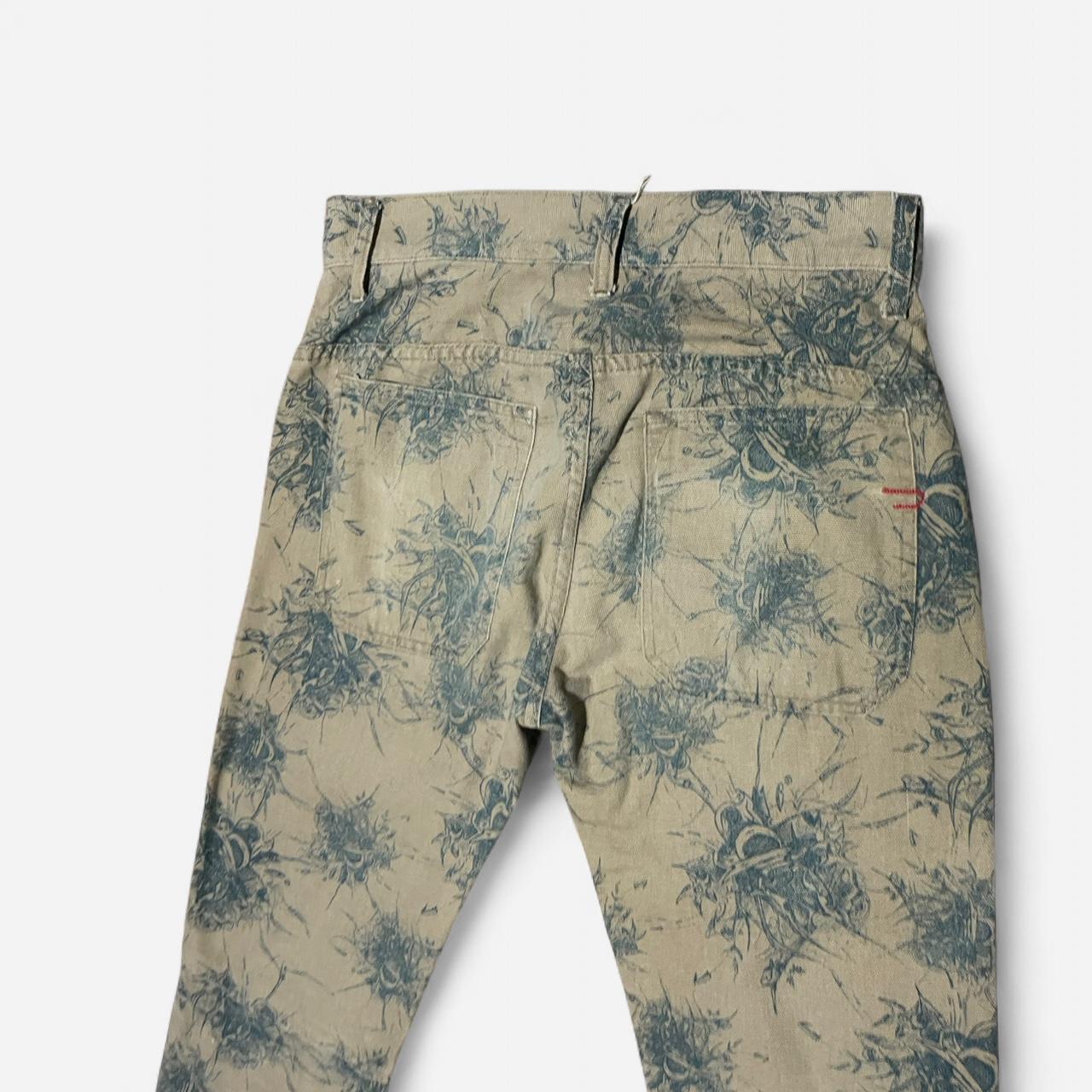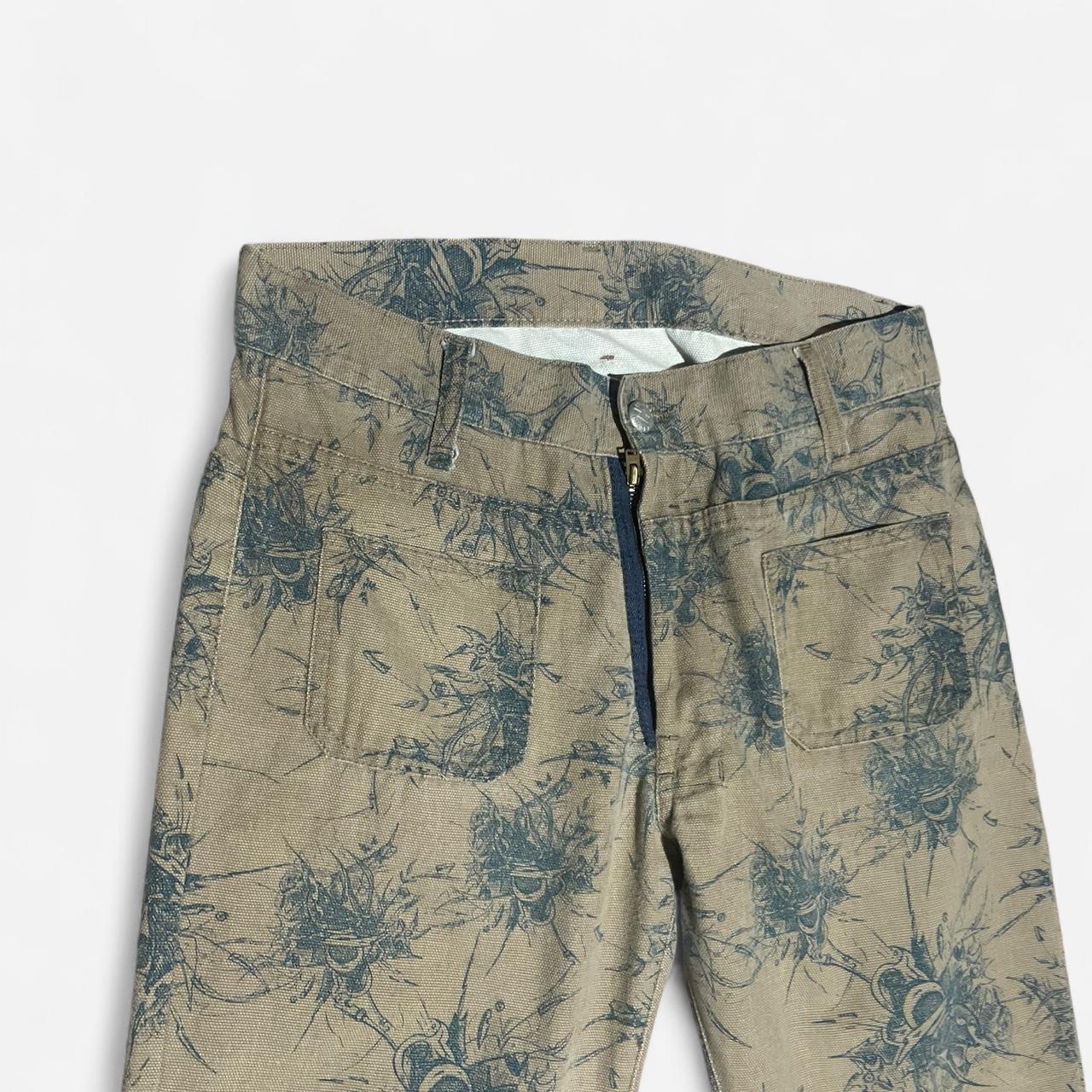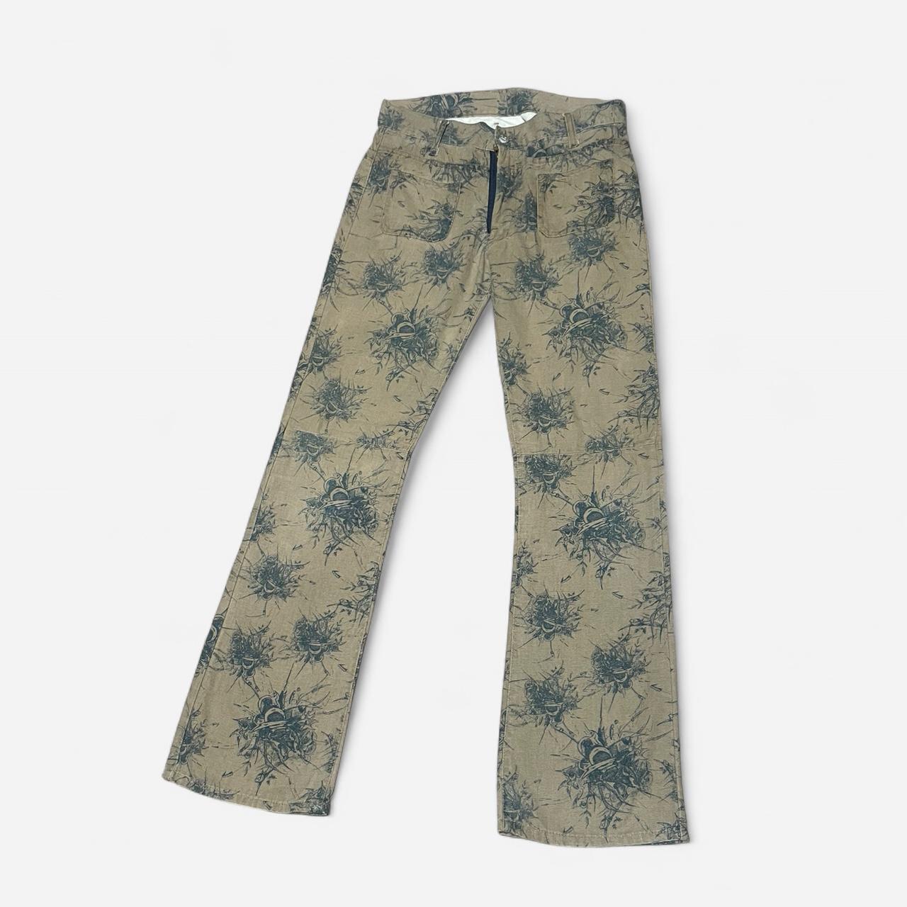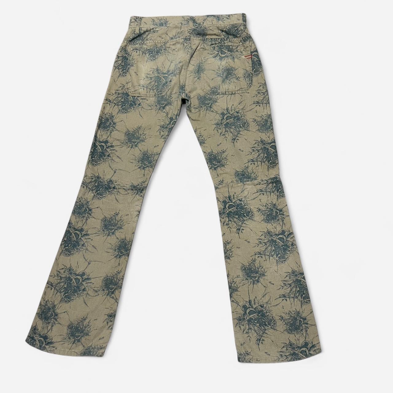 Diesel Factory Deadstock RARE Tan and green Cyber floral print flare pants