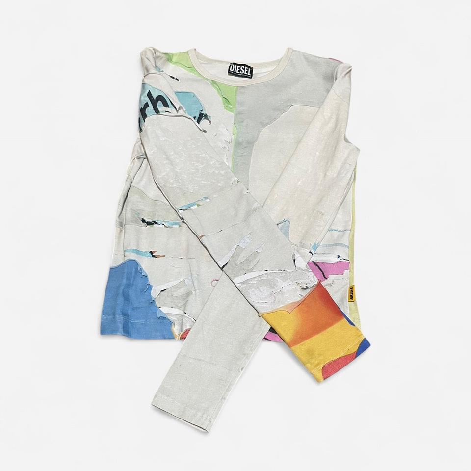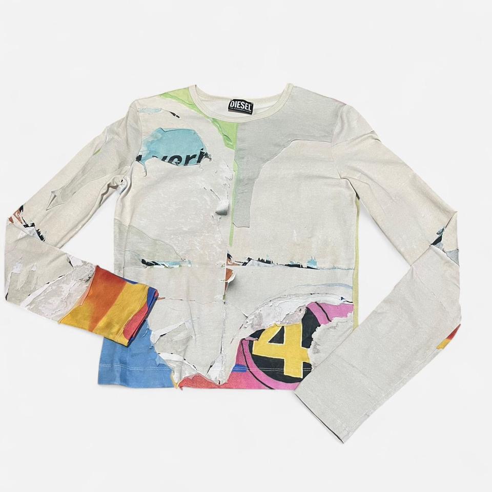 Diesel T-Crany Asymmetrical Scrappy Graphic Print long sleeve Size Small
